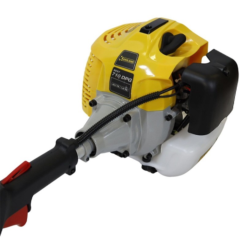 Il decespugliatore multifunzione Garland Best 710DPG-V20 ha un motore molto potente. Fornisce una potenza totale di 1,8 / 1350 W. Questo modello di decespugliatore ha una capacità del serbatoio di 1,2L e un cilindrata di 42,7 cc.