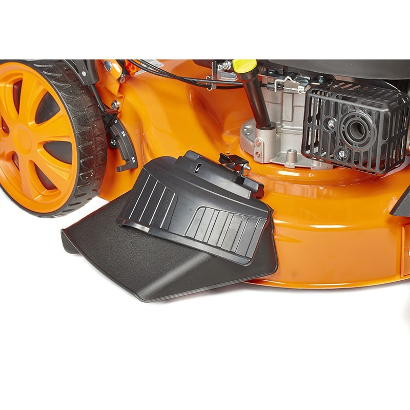 Il tosaerba ha un'ampia larghezza di taglio di 51 cm e 5 impostazioni di altezza di taglio regolabili da 25 a 75 mm. Inoltre, include una paletta da 60 L che le consente una totale indipendenza durante il lavoro, senza dover fare continue soste, e ha un indicatore di riempimento della paletta. Ha anche un'impugnatura ergonomica e una funzione 4-in-1 (taglio-riciclaggio-riciclaggio-uscita laterale di taglio)