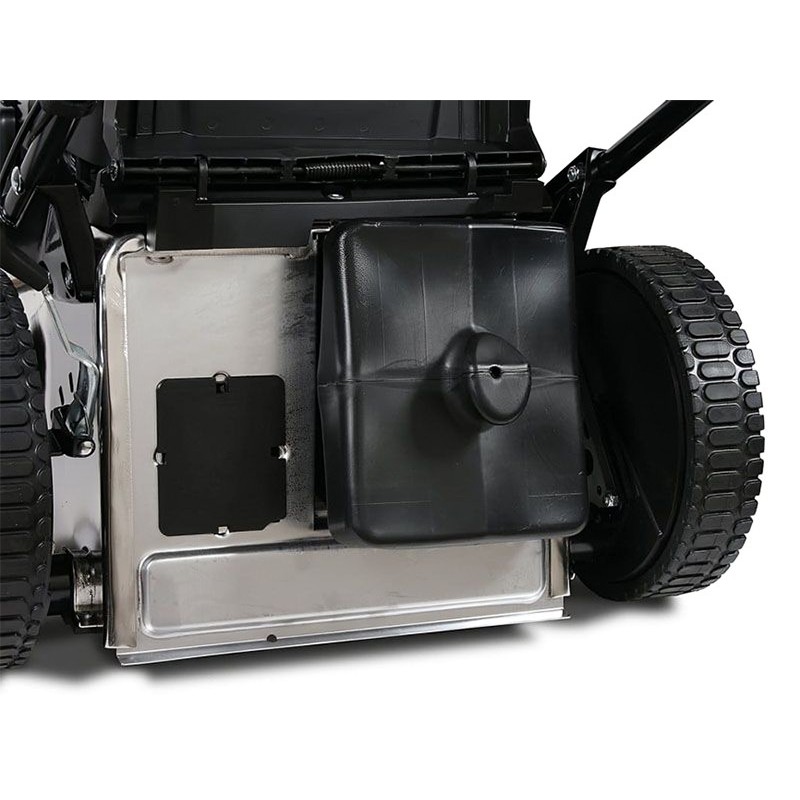 Il telaio in acciaio inox da 2 mm e il raccoglitore semirigido da 70 litri assicurano durata e comfort durante l'uso. Questo modello semovente consente di regolare la velocità con tre opzioni disponibili, rendendo facile l'adattamento a diversi terreni.