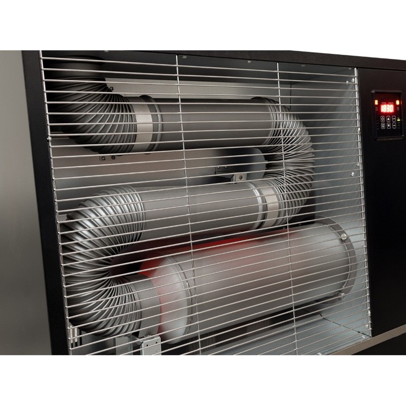 Il suo touch panel a LED e il telecomando facilitano la regolazione precisa della temperatura, mentre il suo funzionamento senza ventola evita la dispersione di polvere nell'aria, creando un ambiente più pulito e sano. Tutto questo lo rende uno strumento indispensabile per gli spazi che richiedono un calore potente e costante.