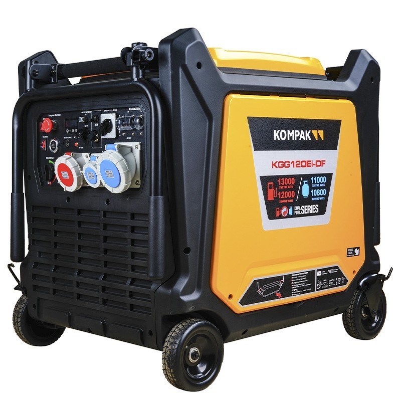 Il generatore Full Power Dual Fuel Kompak KGG120Ei-DF è una soluzione potente e versatile per garantire un'alimentazione stabile in qualsiasi ambiente. Grazie alla sua tecnologia inverter con curva sinusoidale pura, protegge le apparecchiature elettroniche più sensibili, garantendo un'alimentazione costante e affidabile.