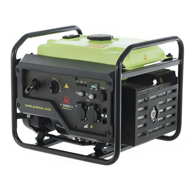 Il Generatore Inverter a Benzina Pramac P3500I/O è dotato di una strumentazione che include un'uscita di potenza con indicatore verde e allarmi rossi di sovraccarico e olio. Dispone anche di un contaore e di un indicatore del carburante, nonché di prese per i kit di parallelizzazione, che offrono flessibilità nella capacità di uscita.