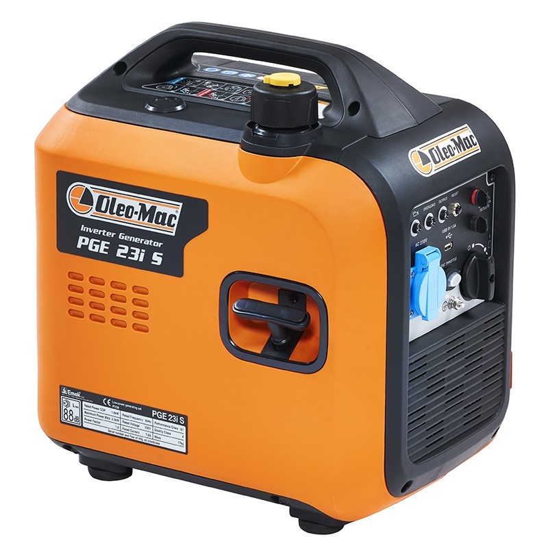 Il Generatore Elettrico Inverter Oleo Mac PGE 23i S è una potente macchina inverter con una potenza nominale di 1,8 kW e una capacità di avviamento di 2,3 kW. È alimentato da un motore Emak K 300 HG OHV da 79 cc e dispone di un serbatoio del carburante da 4 litri e di un serbatoio dell'olio da 1,1 litri, che garantiscono una lunga autonomia.