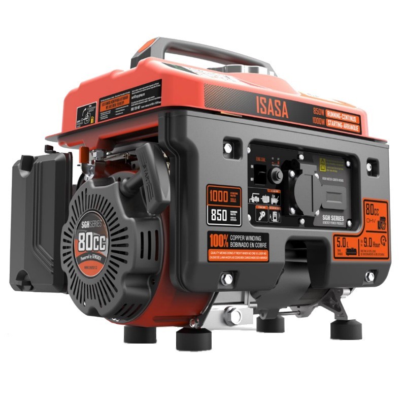 Il Generatore elettrico a benzina Isasa 1000W Genergy Isasa 1000W ha un sistema di stabilizzazione di tipo Condensatorecon un cilindrata di 80 cc e una capacità di olio di 0,3L - SAE10W40.