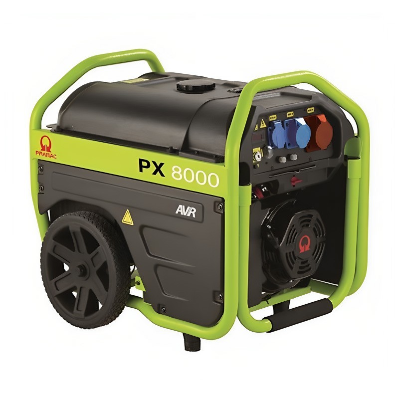 In termini di versatilità, Pramac PX8000 è dotato di una varietà di prese, tra cui SCHUKO 230V 16A IP54, 2P+T CEE 230V 16A IP44 e 3P+N+T CEE 400V 16A IP44. Questo facilita il collegamento di dispositivi e apparecchiature con requisiti di alimentazione diversi.