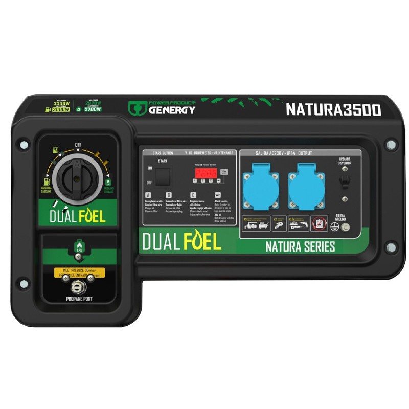 Il generatore elettrico Genergy Natura 3500 III è la soluzione ideale per garantire un approvvigionamento energetico affidabile sia in ambienti residenziali che professionali. Il suo sistema a doppia alimentazione gli consente di funzionare a benzina o a gas propano, adattandosi alle esigenze e ottimizzando i consumi in ogni situazione.
