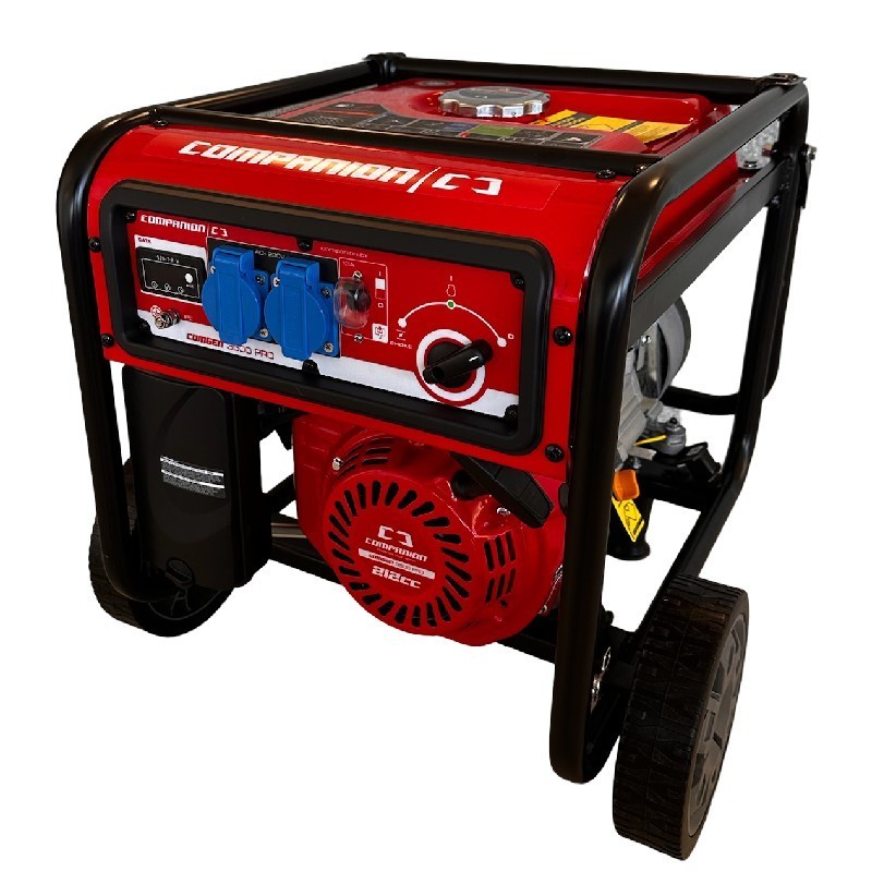 Comgen 3500 PRO con ruote e maniglia è un generatore a benzina versatile e robusto, ideale per il backup di energia a casa, nei cantieri o per le attività all'aperto. Offre una potenza nominale di 3,0 kW e una potenza di avviamento di 3,5 kW, coprendo facilmente utensili e apparecchi.