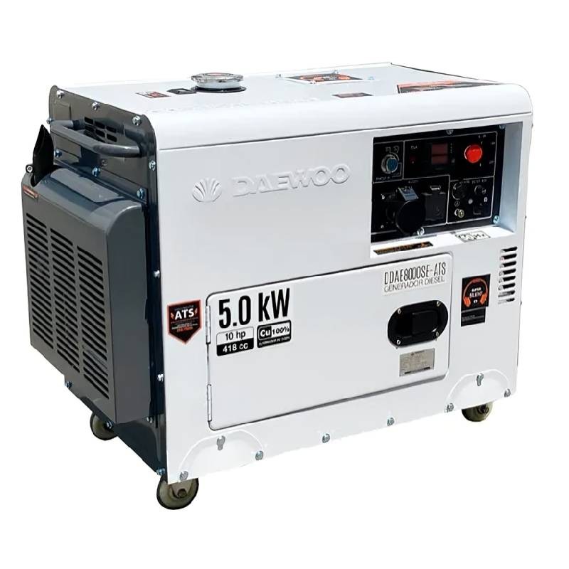 Il generatore diesel DDAE8000SE-SS si distingue per la sua robustezza e il suo sistema di insonorizzazione da 72-74 dB. Questa unità da 5,0 kW integra un motore da 15 CV raffreddato ad acqua, che garantisce una gestione termica ottimale. È la scelta ideale per i professionisti che cercano una fonte di energia affidabile e potente in condizioni difficili.