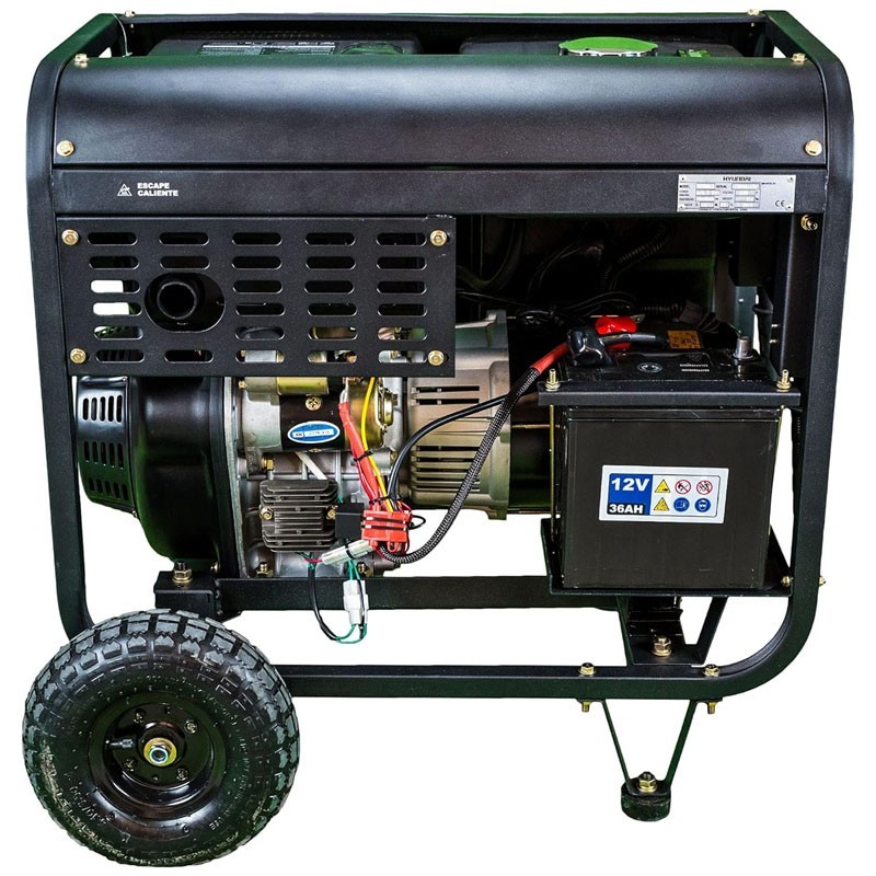 Dotato di un motore diesel a 4 tempi raffreddato ad aria, offre una potenza nominale di 6 kW e una massima di 6,5 kW. Caratteristiche come l'allarme di basso livello dell'olio con spegnimento automatico e la doppia base di appoggio per ridurre le vibrazioni assicurano prestazioni solide. Inoltre, dispone di un ampio serbatoio da 13 L per una maggiore autonomia.