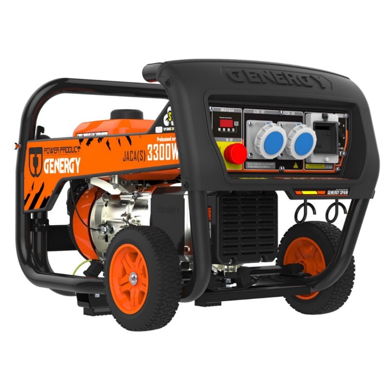 Il Generatore Elettrico a Benzina Genergy Jaca S-Line 3300W ha un tipo di corrente monofase e dispone di un sistema di stabilizzazione elettronica "SVR" con dimensioni di 710x517x527 mm e un peso di 52 Kg.