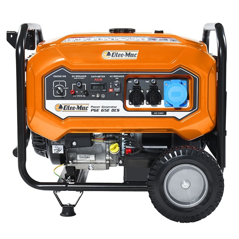 Il generatore elettrico a benzina Oleo Mac PGE 65 DCS è una fonte di energia affidabile con avviamento elettrico, tensioni nominali di 110/120/220/230 V e una frequenza di 50/60 Hz. Il serbatoio del carburante da 25 litri e il serbatoio dell'olio da 1,1 litri assicurano un funzionamento duraturo.