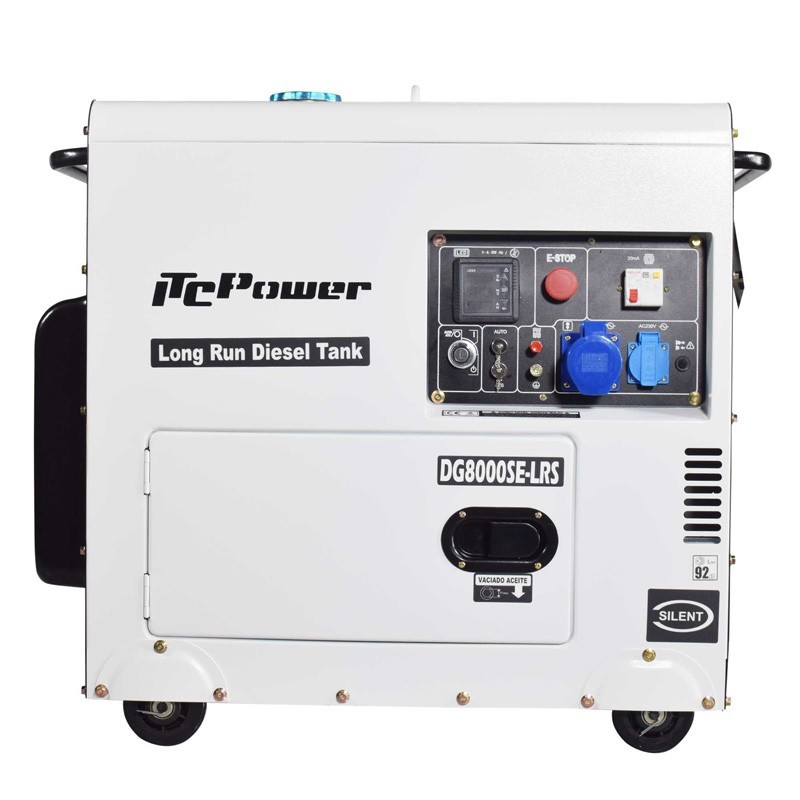 Il generatore elettrico ITCPower DG8000SE-LRS contiene un motore D500E con una cilindrata di 498 cc e ha una capacità di olio di 1,65 L. Funziona a 3000 RPM e ha una potenza nominale di 12 CV.