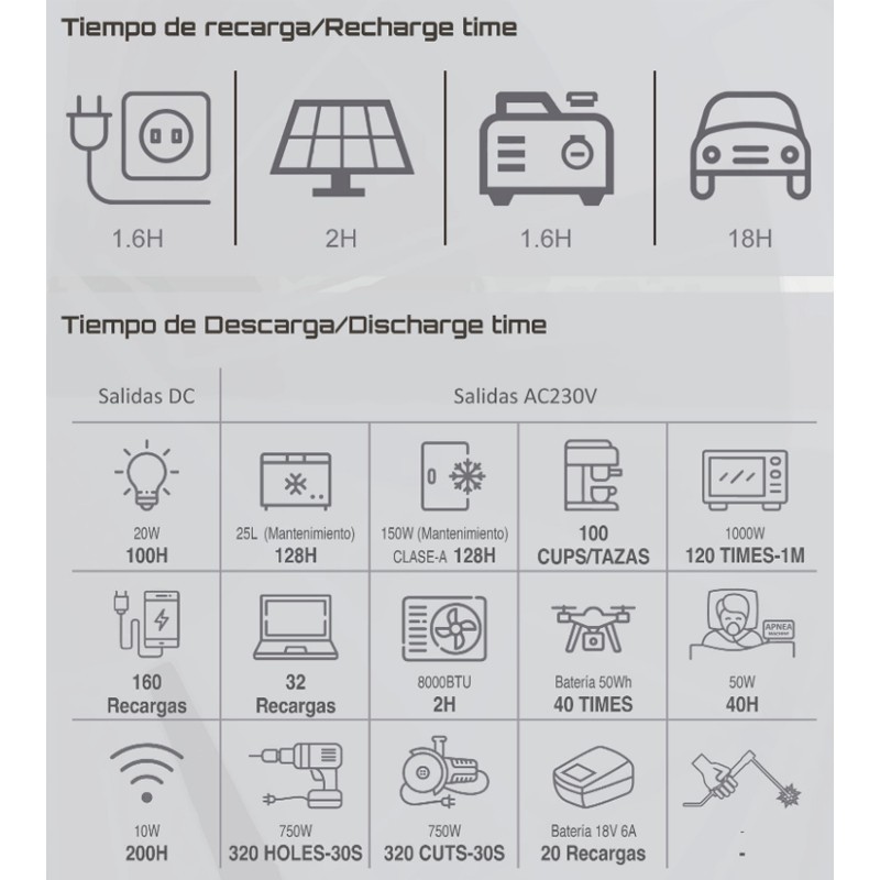 La sua funzione di carica-uscita simultanea consente di utilizzare i dispositivi collegati mentre il generatore continua a ricaricarsi, ottimizzando i tempi e garantendo un'alimentazione costante.