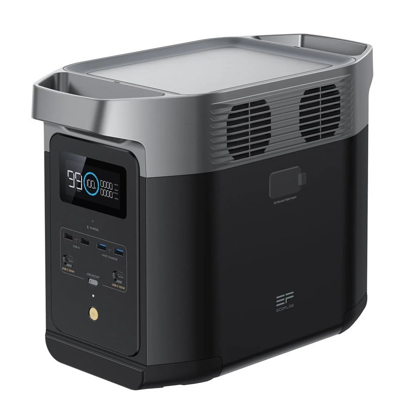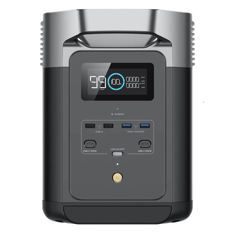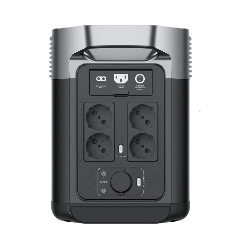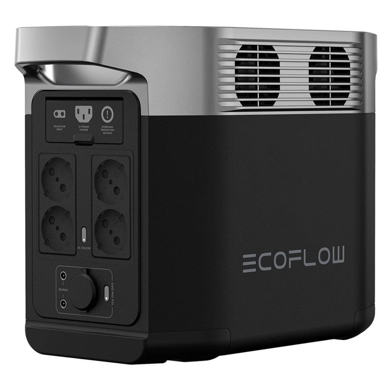 Il generatore solare EcoFlow DELTA 2 ha 4 uscite AC di 1800 W in totale, con un picco di 2700 W e un carico di 1200W. Questa macchina comprende circa 3000 cicli che sono a più dell'80% della sua capacità.