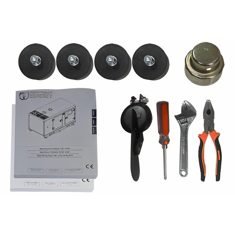 Il gruppo elettrogeno diesel Genergy GDS14T 14kVA ha una pressione sonora media di 70dB, è dotato di una bobina di rame e con un sistema di stabilizzazione elettronico "AVR" ci dà una frequenza di 50 Hz, e un cilindrata di 1809 cc.