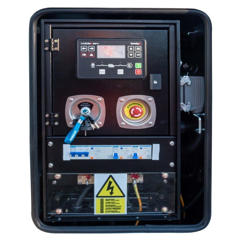 Il pannello di controllo è dotato di allarmi di sicurezza, come la bassa pressione dell'olio e l'alta temperatura di raffreddamento, e consente la connessione remota per un facile controllo del generatore. Con un grado di protezione IP23/H, è ideale per l'uso all'aperto e in condizioni difficili.