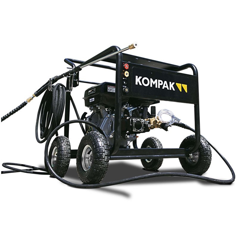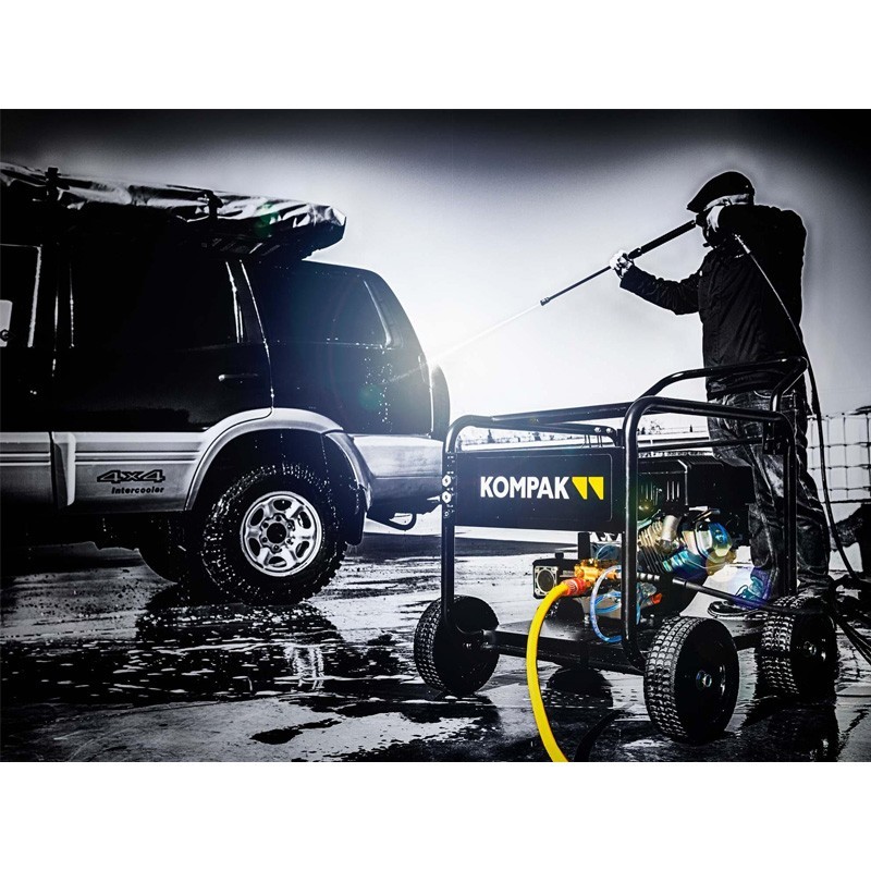 L'idropulitrice a benzina KOMPAK KPW4000P, dotata di una pompa industriale ad alte prestazioni con guarnizione in ceramica e protezione termica, garantisce prestazioni durature ed efficienti.