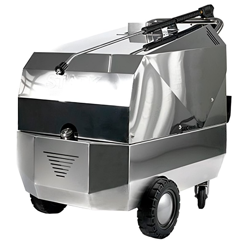 Eroga una pressione di 200 bar con una portata di 900 litri all'ora e dispone di una caldaia diesel verticale in acciaio inox che aumenta la temperatura e velocizza la rimozione del grasso. Il pannello di controllo funziona a 24 V per un funzionamento sicuro, con display e indicatori disposti in modo chiaro.