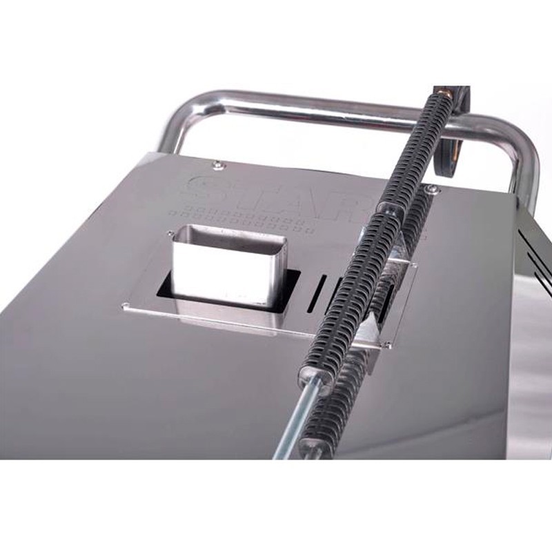 Si muove con due ruote anteriori e due posteriori girevoli con freni e mantiene un formato robusto per un uso intensivo con 188 kg e misura 110 x 68 x 95 cm. Disponibile a 60 Hz su richiesta e con progettazione e produzione galiziana.