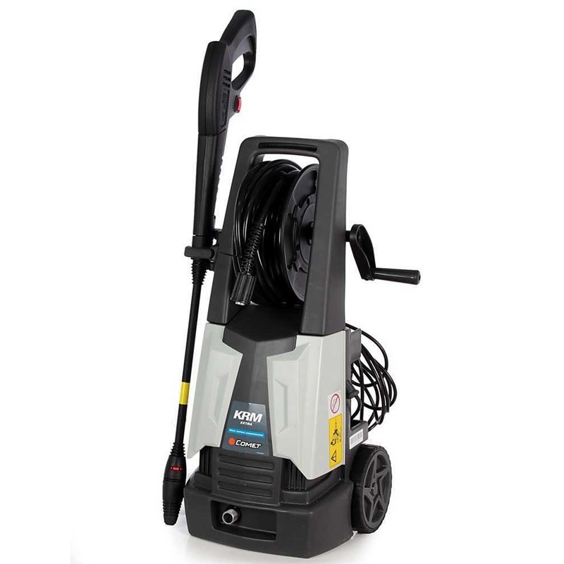 L'idropulitrice ad acqua fredda Comet KRM 1100 Extra è perfetta per l'uso domestico, con caratteristiche come il dispositivo Total Stop per un controllo sicuro del flusso d'acqua e le ruote in plastica per una facile mobilità.