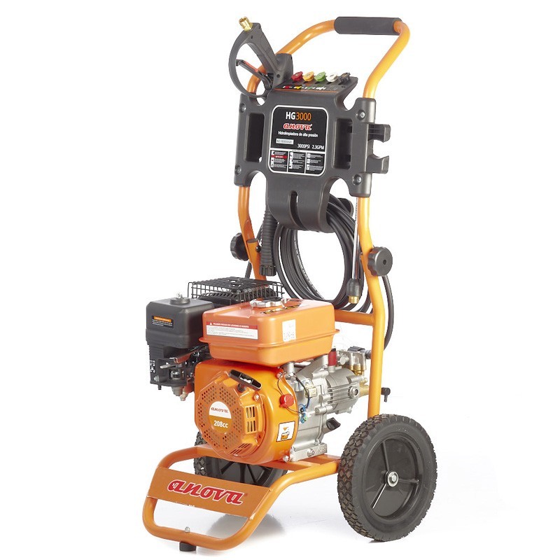 L'idropulitrice Anova HG3000 è alimentata da un motore OHV a 4 tempi con protezione termica. Il motore offre una potenza totale di 7HP / 5,2kW e un cilindrata di 208cc.