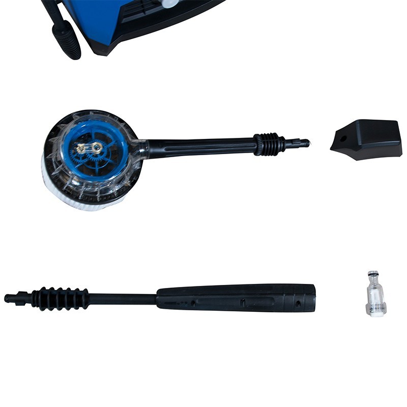Il suo motore da 2.000 W funziona con una tensione di 230 V-50 Hz, garantendo prestazioni robuste e costanti. Questa idropulitrice è dotata di una pompa assiale con tre pistoni oscillanti in alluminio e pistoni in acciaio inox temprato, che garantiscono durata ed efficienza.
