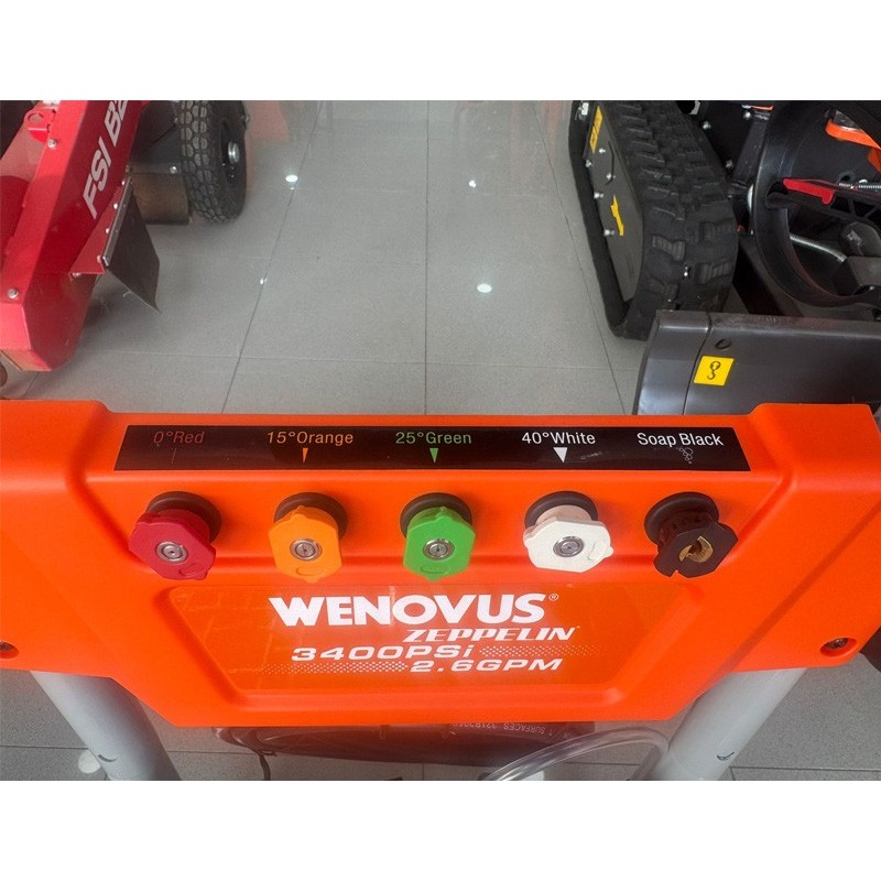 L'idropulitrice Wenovus 3400 Zeppelin è una soluzione potente per la pulizia esterna più impegnativa, grazie al suo motore WEIMA da 212 cc e a una pressione massima fino a 234 bar. Dotata di una pompa assiale in alluminio, garantisce una portata costante di 9,84 litri al minuto, ideale per rimuovere lo sporco radicato da macchinari, pavimenti o veicoli.