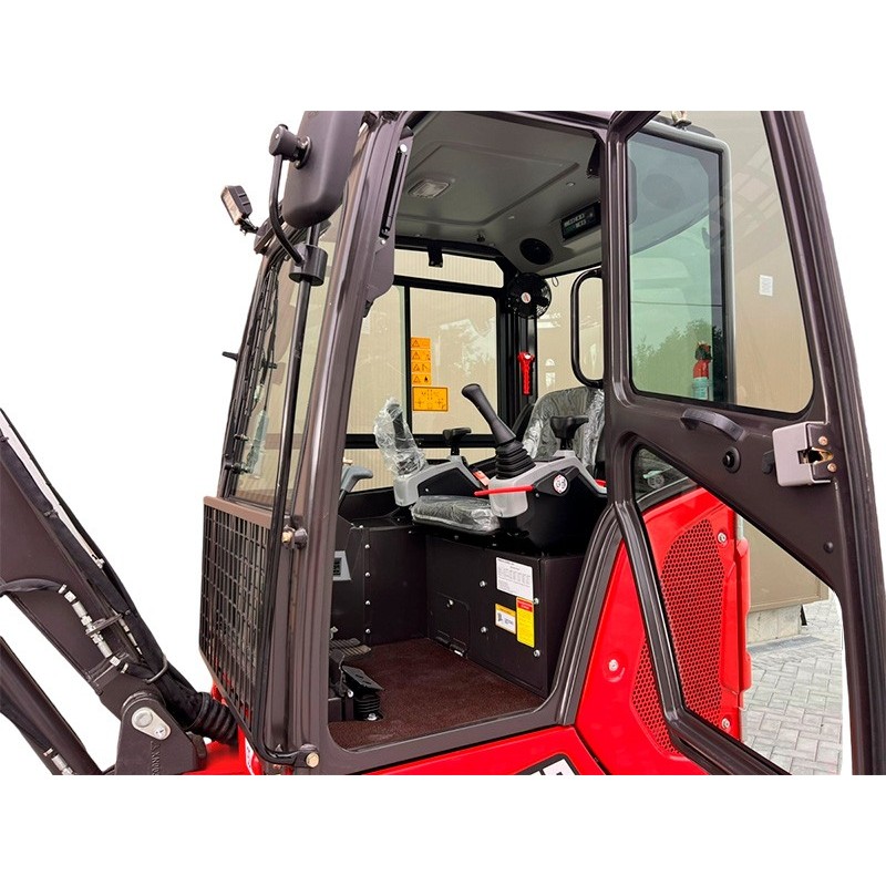 Per l'uso quotidiano, offre uno sbraccio massimo di 4,29 m e una profondità di scavo di 2,40 m, sufficiente per trincee di servizio, fondazioni e drenaggio agricolo. La benna standard da 0,04 m³ offre un buon equilibrio tra capacità e precisione. Un miniescavatore compatto con una cabina confortevole, progettato per operare in sicurezza nei cantieri e nei lavori continui.