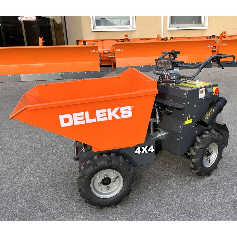Ideale per professionisti e privati, Deleks XE-4WD combina potenza, versatilità e comfort in una macchina progettata per ottimizzare il trasporto di materiali in ambienti di costruzione, giardinaggio o manutenzione.
