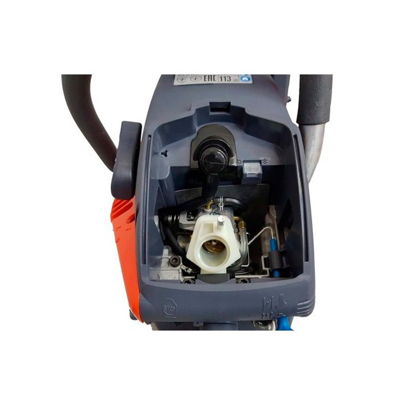 Dispone di un sistema antivibrazioni con 1 molla e 5 blocchi di gomma e 5 blocchi di gomma. Questi si trovano tra l'impugnatura e il supporto del motore. L'isolamento dalle vibrazioni è totale per l'operatore |