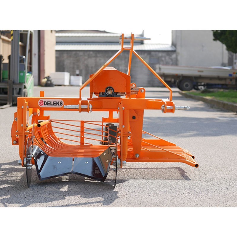 La scavatrice di patate per trattore Deleks DPT-150 35-60 HP è composta da un solco vibrante per penetrare nel terreno ed estrarre le patate e da una griglia per separare le patate dal terreno. È adatta alla maggior parte di trattori con una potenza minima di 35 - 60 HP.