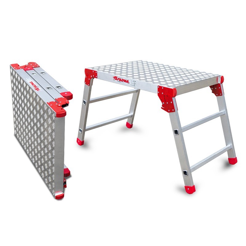 La piattaforma di lavoro Faraone PLA-F è progettata completamente in alluminio, il che la rende molto più leggera e versatile di qualsiasi altra piattaforma sul mercato. Il numero di gradini della piattaforma dipende dal modello scelto e può essere di 2 o 3 gradini.