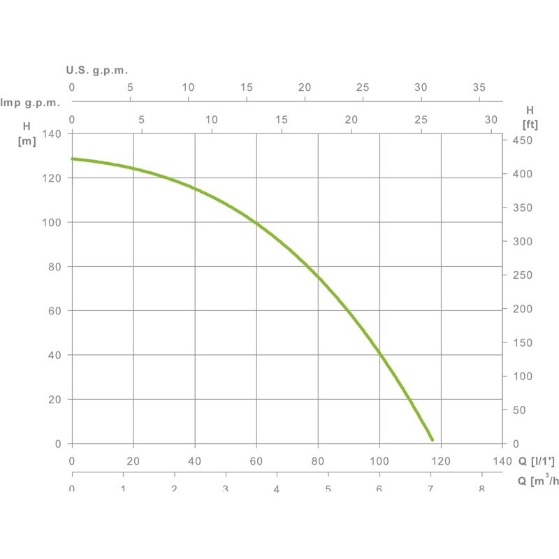 Il suo design sommergibile le consente di lavorare fino a 37 metri di profondità, raggiungendo un'altezza massima di scarico di 130 metri e una portata fino a 6.800 litri all'ora.