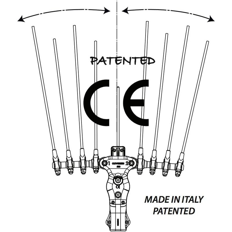 Le aste in fibra di carbonio sono delicate sull'albero e staccano efficacemente le olive anche in caso di chiome fitte. La sua lunghezza regolabile da 1,7 a 2,2 metri raggiunge i rami alti senza scala e migliora l'ergonomia in qualsiasi contesto di piantagione.