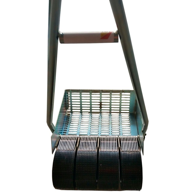 Questo modello ha un corpo in tubo d'acciaio zincato con un diametro di 20 mm e uno spessore di 1,5 mm, che lo rende durevole e resistente all'uso intensivo. I suoi 4 rulli inclinabili lunghi 7 cm le permettono di adattarsi alla forma dell'albero e di migliorare l'efficienza della raccolta in un'area di lavoro di 29 cm. La sua impugnatura in PVC garantisce una presa confortevole durante l'uso.