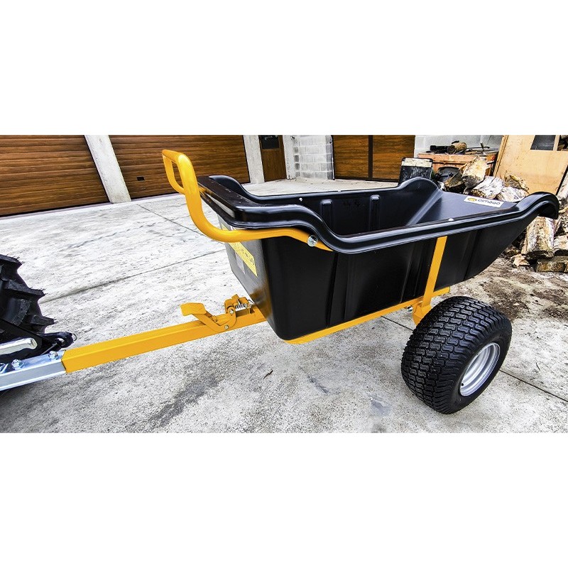 Le sue dimensioni di 2,15 metri di lunghezza, 1,18 metri di larghezza e 0,80 metri di altezza offrono spazio sufficiente per trasportare una varietà di materiali e strumenti necessari per il lavoro quotidiano nei campi o in giardino.Con un peso di soli 44 kg, il mini rimorchio Eco è leggero e facile da manovrare.