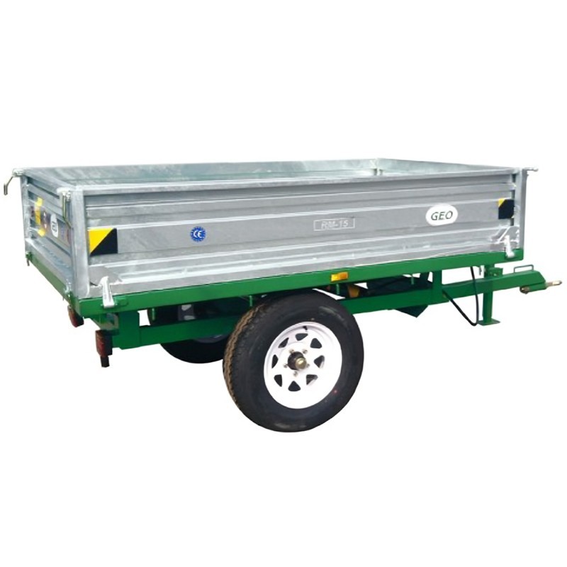 Il rimorchio a due ruote Geo Italy RM 15 è una soluzione robusta e versatile per un'ampia gamma di applicazioni di trasporto agricolo e forestale. Progettato per adattarsi a trattori con potenze comprese tra 20 e 50 CV (15-37 kW), questo rimorchio presenta un angolo di reclinazione di 45 gradi, che lo rende facile da caricare e scaricare.