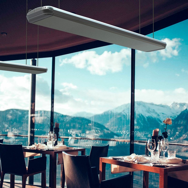 Dotato di lampade non accecanti (rosse), il riscaldatore tubolare schermato assicura una distribuzione uniforme del calore, mentre l'elemento radiante in alluminio anodizzato migliora l'efficienza. La durata della lampada è di 5000 ore, per una durata eccezionale.