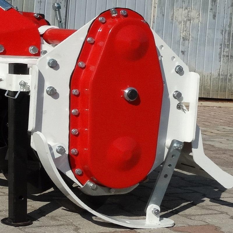 Inoltre, il Rotovator PTO Giemme IGN include un cofano posteriore regolabile e guide laterali regolabili in altezza, che gli consentono di adattarsi alle varie condizioni del terreno. Con il suo rotore dotato di sei zappe elicoidali per flangia e l'albero cardanico T5 da 800 mm con frizione, assicura un lavoro efficiente e di alta qualità nella coltivazione del terreno.
