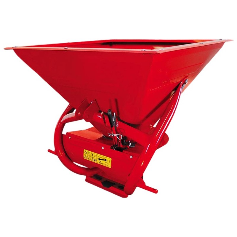Inoltre, è dotato di un sistema di aggancio universale a 3 punti di Categoria I e di una leva manuale per l'apertura dello spandiconcime, che consente un controllo preciso ed efficiente della distribuzione del fertilizzante.