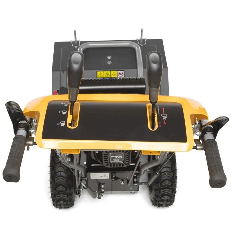 Il sistema di autopropulsione, la trasmissione a disco con frizione e 6 marce anteriori + 2 posteriori assicurano versatilità. Dotato di ruote da 14" x 4.60-6 Snow Hog per una guida fluida. Con piatto spazzola, filtro aria in spugna + bagno d'olio e regolazione dell'angolo massimo di 15°/15°. Potenza e prestazioni per mantenere le sue aree pulite e ordinate.