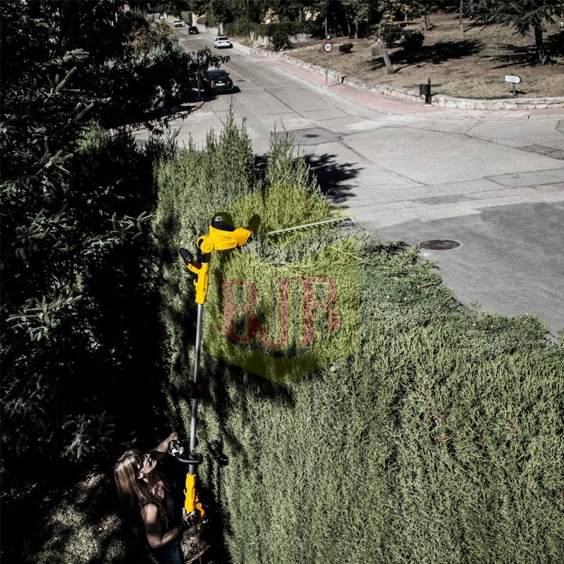 Il tagliasiepi elettrico modello Garland Set 353 FE è un tagliasiepi telescopico multifunzione. È configurato come un tagliasiepi ad asta per tagliare le parti superiori della siepe. Questo elimina la necessità di usare le scale. Il modello ha un peso di soli 5,1 kg.