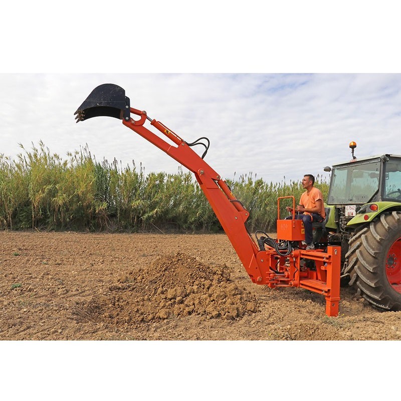 Ha un facile collegamento a trattore, anche quando si lavora da soli, e un sistema di trasporto sicuro grazie al gancio di bloccaggio. Disponibile nelle versioni con traslatore fisso o meccanico, offre una profondità di scavo fino a 2400 mm e un'altezza massima di scarico di 2050 mm.