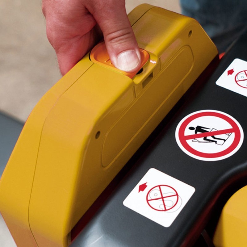 Il transpallet elettrico a caricamento corto Ayerbe Eleqtra ha un motore a spazzole alimentato da una batteria da 24 volt con una capacità di 15 ampereora.