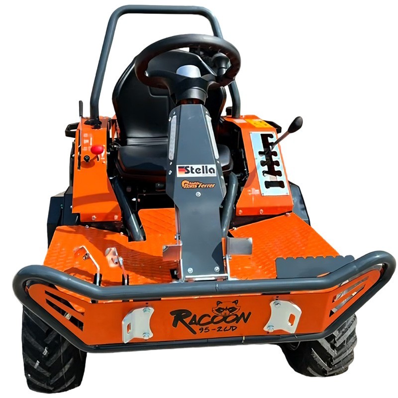 Il suo sistema di trazione posteriore con blocco del differenziale disinseribile al 100% assicura un'eccellente aderenza su terreni irregolari. Con una larghezza di taglio di 95 cm e 52 lame di tipo Y, Stella Racoon 95 assicura un taglio preciso e veloce. Inoltre, l'altezza di taglio regolabile tra 30 e 90 mm consente di adattarsi alle diverse esigenze di lavoro.