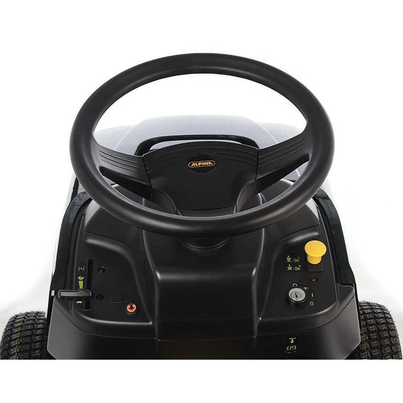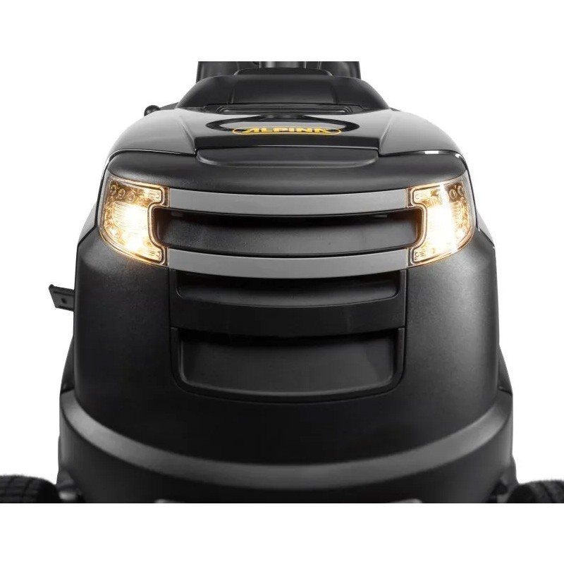 EL trattore tosaerba Alpina ha un motore a benzina con una potenza di 352 cc e 5,8 kW in grado di lavorare comodamente su una superficie fino a 2800 m2.