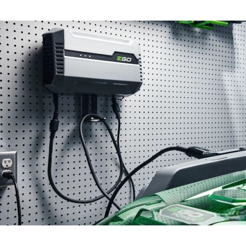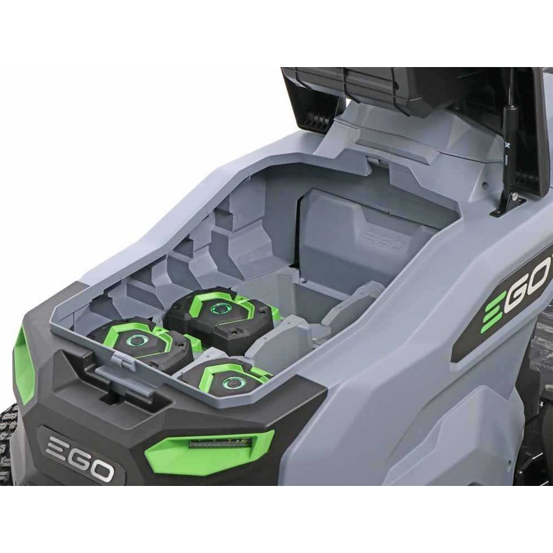 Inoltre, il suo alloggiamento è progettato per contenere fino a sei batterie portatili EGO da 56V, che possono essere caricate simultaneamente con il caricabatterie opzionale CHV1600E, assicurando una potenza di lunga durata per coprire grandi aree di prato.