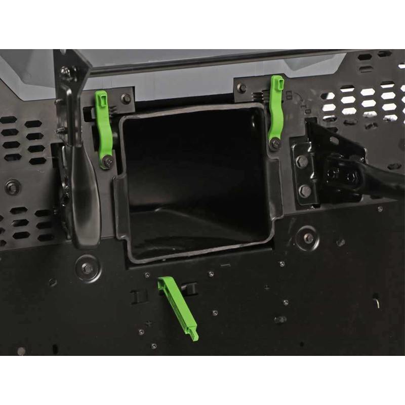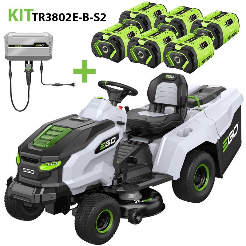 Il tosaerba a batteriaTrattore Ego Power TR3801E-B, dotato di due lame e di una larghezza di taglio di 98 cm, assicura una raccolta efficiente dell'erba nel suo ampio cassone di raccolta posteriore da 300 litri, massimizzando il tempo di taglio.
