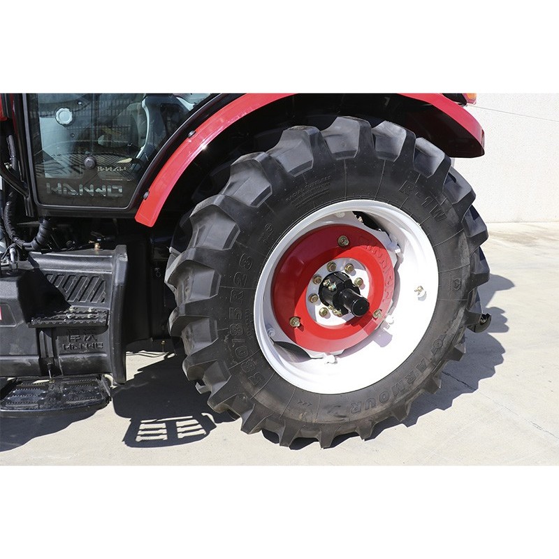 È equipaggiato con pneumatici posteriori da 380/85R28 e anteriori da 280/70R20, che garantiscono stabilità e aderenza ottimali. La sua doppia presa di forza (540/1000 RPM) assicura la compatibilità con diversi attrezzi agricoli, massimizzando l'efficienza nella semina, nell'aratura e nella raccolta.