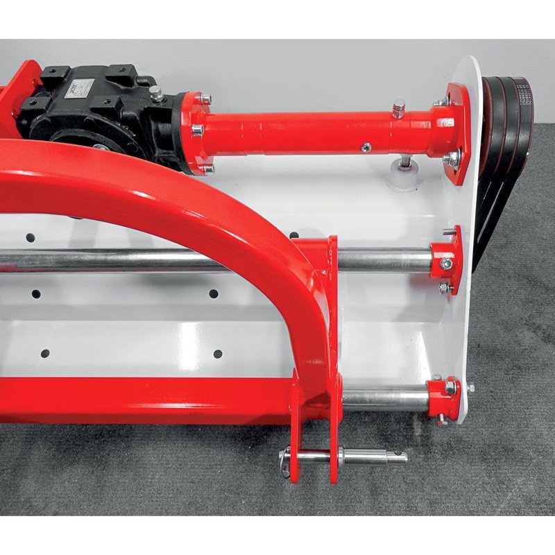 Il rotore bilanciato elettronicamente, dotato di martelli o di lame a Y, assicura prestazioni ottimali, mentre le guide laterali regolabili in altezza consentono alla macchina di adattarsi alle diverse condizioni del terreno. Inoltre, il sistema di tensionamento regolabile e il giunto universale T4 da 1.000 mm contribuiscono alla durata e alla facilità d'uso di questa trinciatrice.
